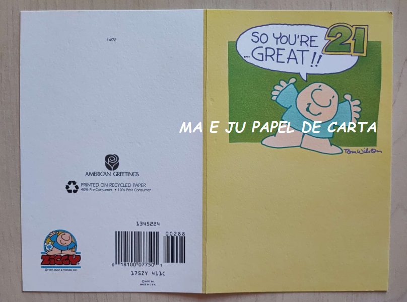 CARTÃO DA COLEÇÃO ZIGGY – AMERICAN GREETINGS