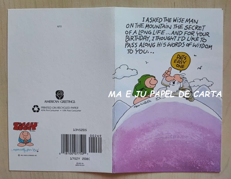 CARTÃO DA COLEÇÃO ZIGGY – AMERICAN GREETINGS